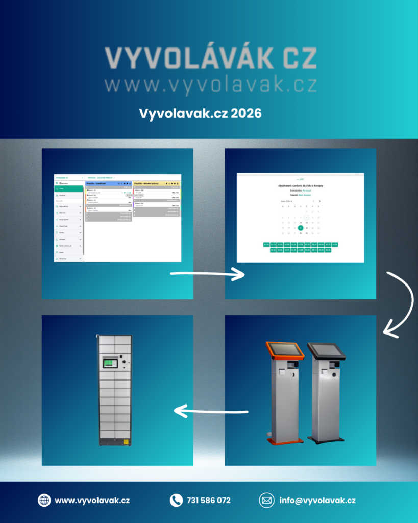 Vizuál ukazuje směr, kterým se posouváme dál – propojení cloudového systému, rezervačního systému, vyvolávacích kiosků a výdejních modulárních boxů do jednoho navazujícího procesu.